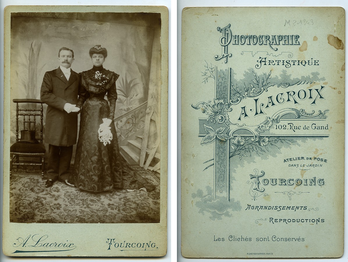 France Tourcoing Couple Portrait Wedding Old Cabinet Card Photo Lacroix 1900