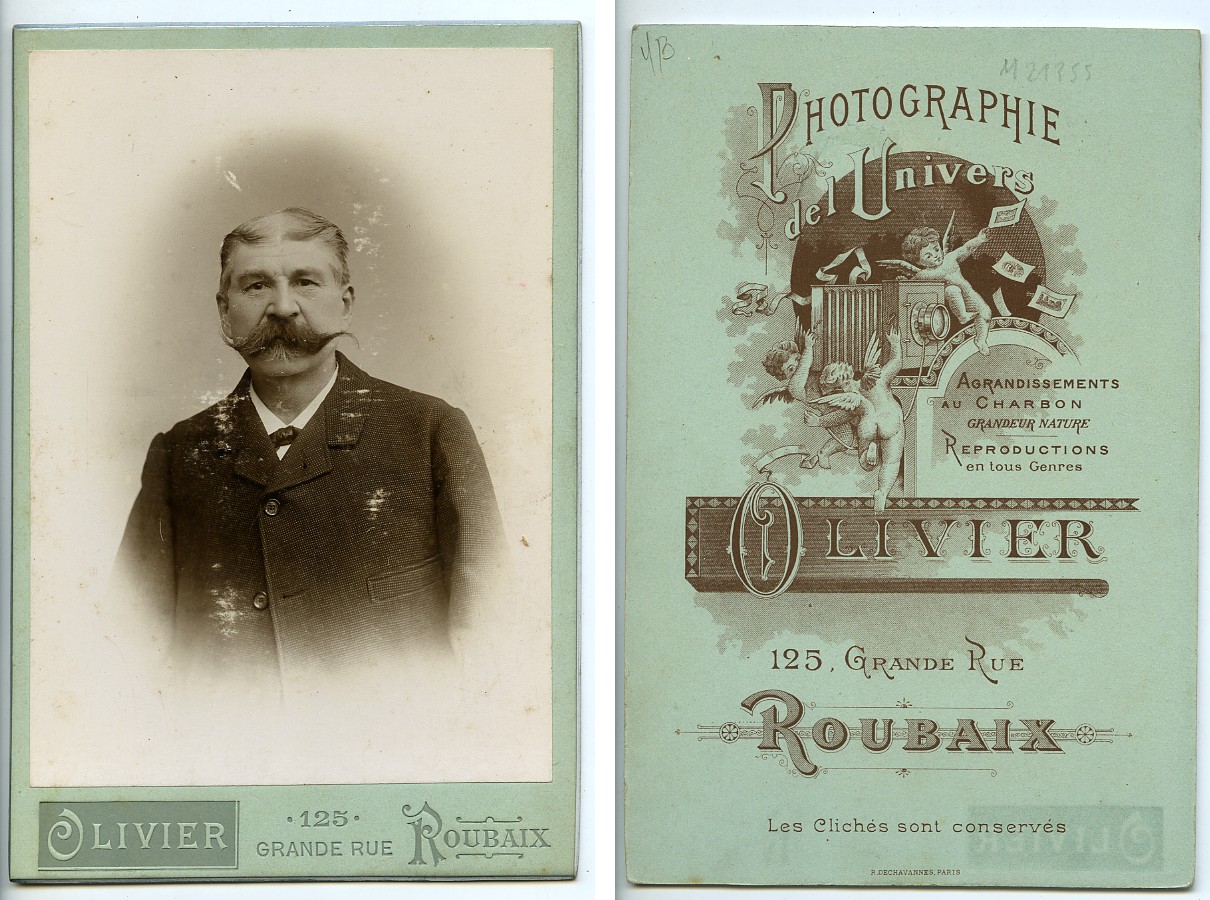 France Roubaix Man with big moustache Old Cabinet Card Photo Olivier 1900