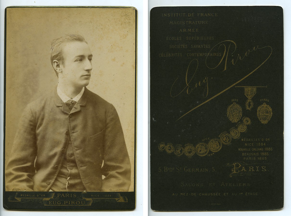 France Paris young man Portrait Old Cabinet Card Photo Pirou 1890