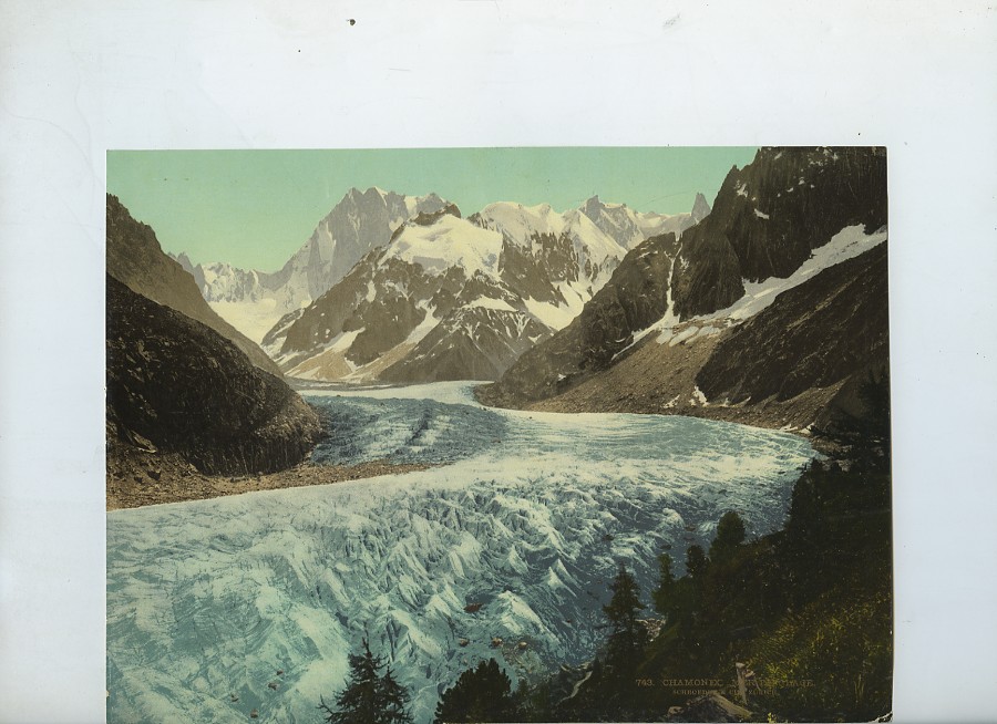 France Chamonix Mer de Glace Glacier Ancienne Photo Colorisée Schroeder 1890
