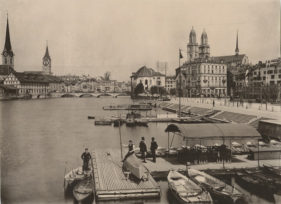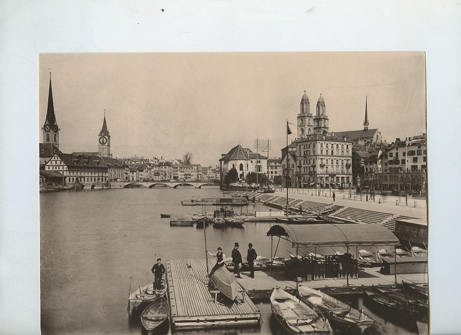 Switzerland Zurich view from Quaibrücke bridge Old Photo Schroeder 1890 #1