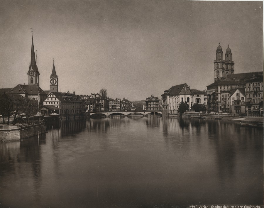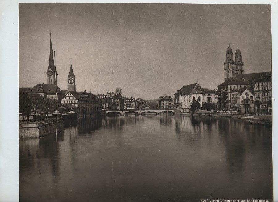 Switzerland Zurich view from Quaibrücke bridge Old Photo Schroeder 1890 #2