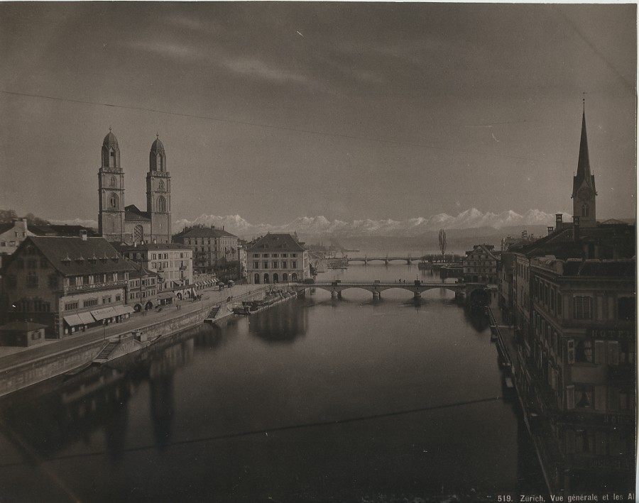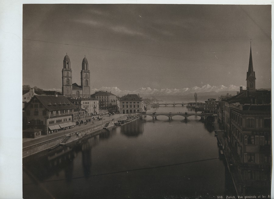 Switzerland Zurich panorama of Alps Mountains Old Photo Schroeder 1890