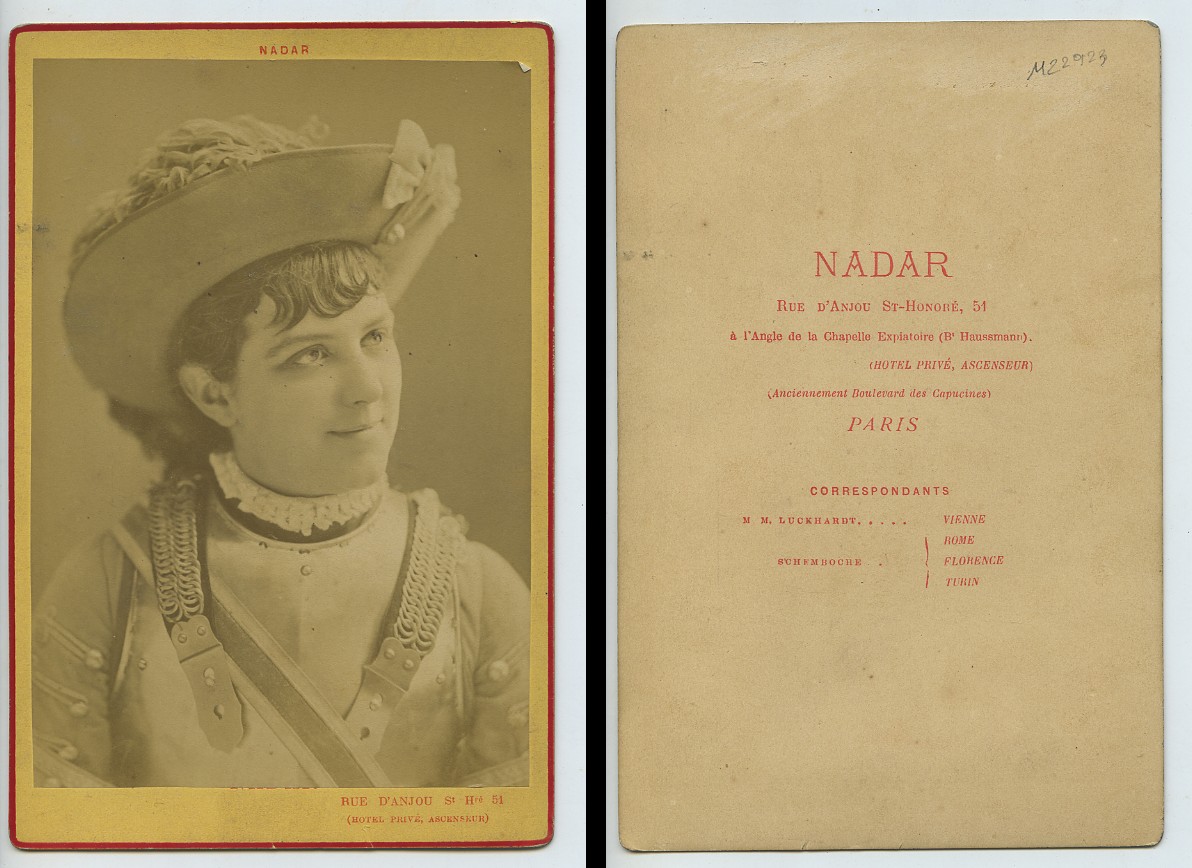 Stage Actress wearing Armor Costume Opera Theatre Old Cabinet card Nadar 1875