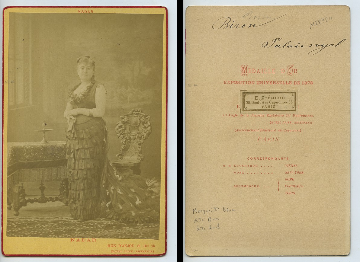 Marguerite Blum aka Biron Actress Opera Theatre Old Cabinet card Nadar 1878
