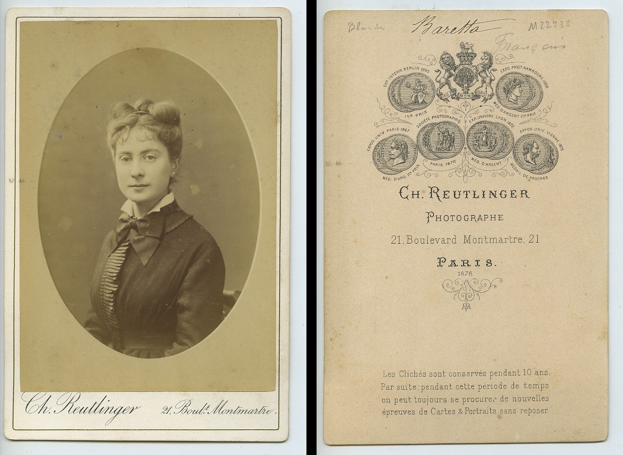 Blanche Barretta Actrice de Theatre Ancienne carte cabinet Reutlinger 1875