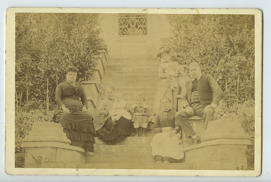 Maubant? Family Group posing on Stairs Theatre related Old Cabinet card 1875
