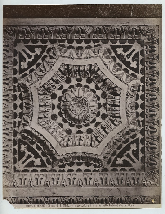 4992 - Firenze. (Chiesa di S. Miniato). Incrostature in marmo nella balautrata del Coro