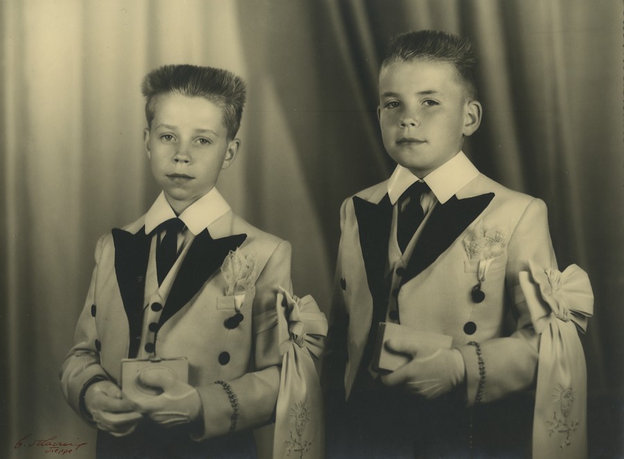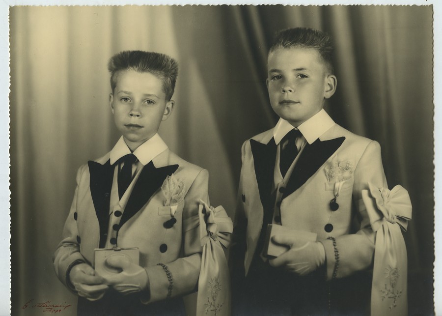 France Dieppe 2 Boys First Communion Suit Religion Old Photo Delacroix 1950