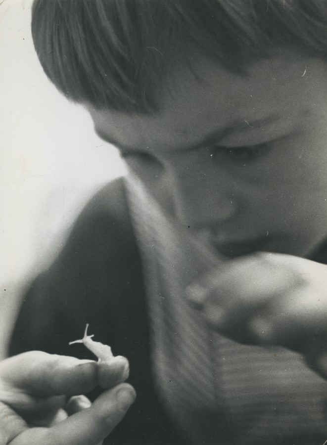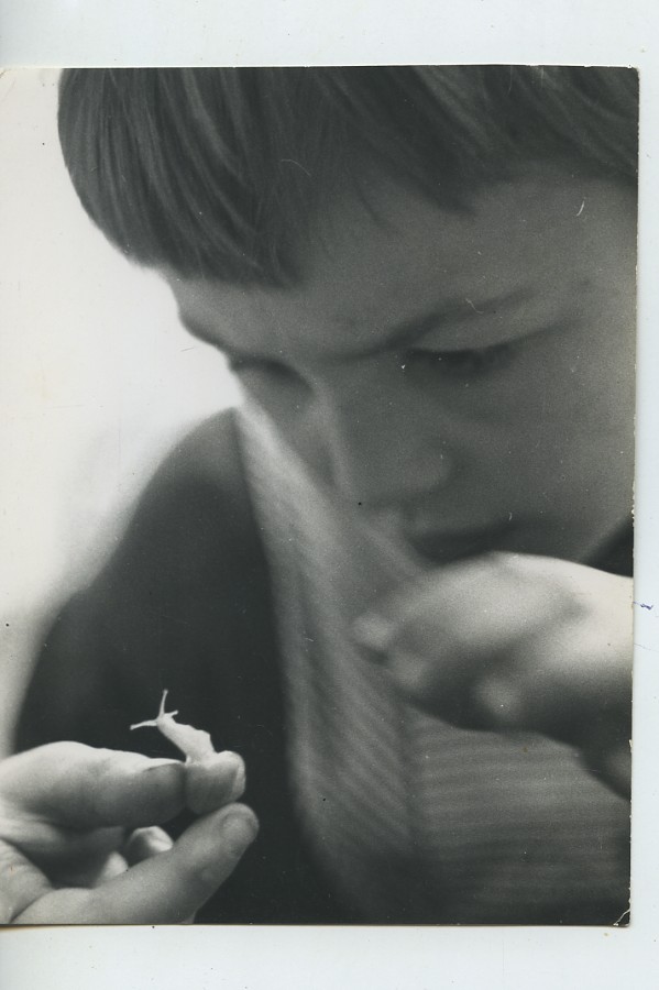 France l'enfant inspectant un escargot Ancienne Photo Amateur 1970