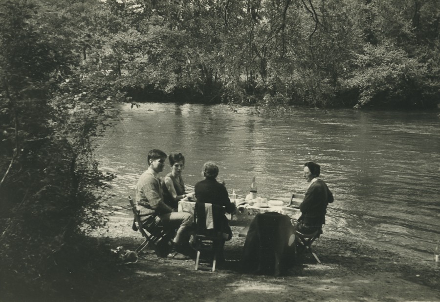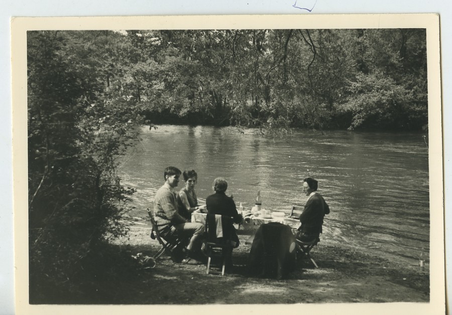 France Group Picnic on River banks Old snapshot Photo 1950