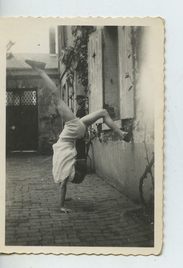 France Méru Girl doing headstand by a House Old snapshot Photo 1950