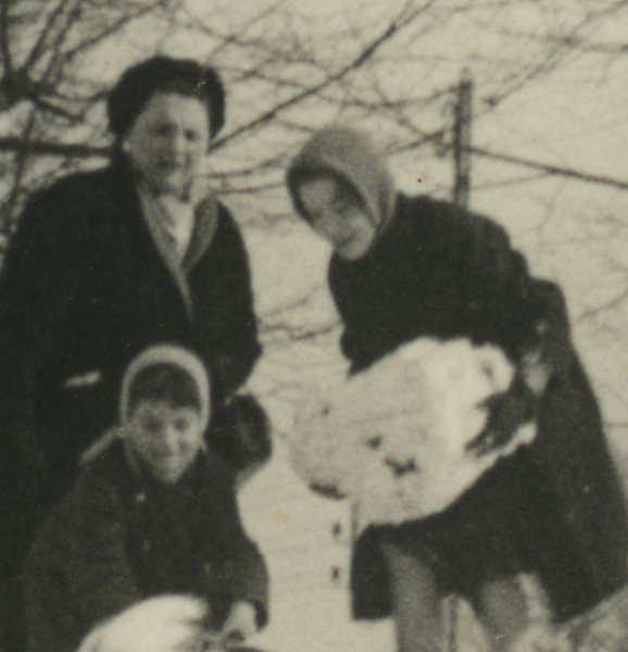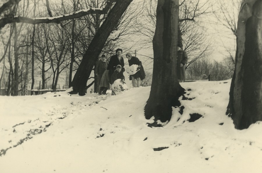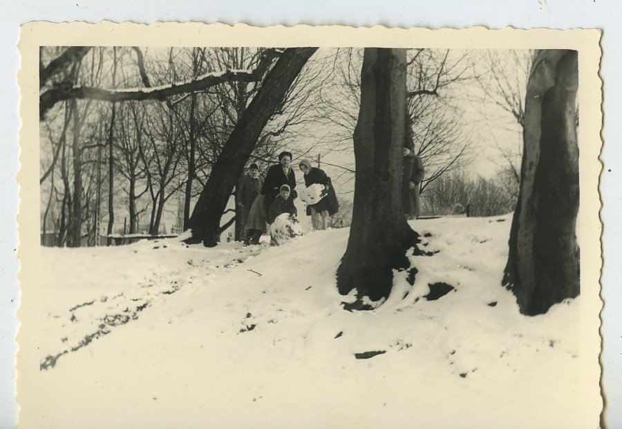 France Winter Family building Snowman? Play Game Old snapshot Photo 1958