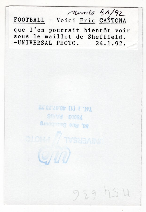 France Joueur de Football Éric Cantona Nimes Olympique Sheffield Ancienne Universal Photo 1992
