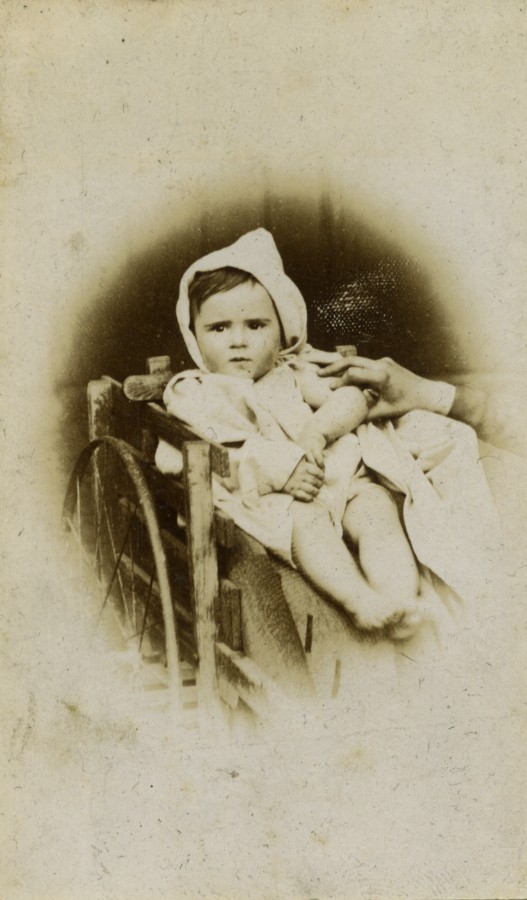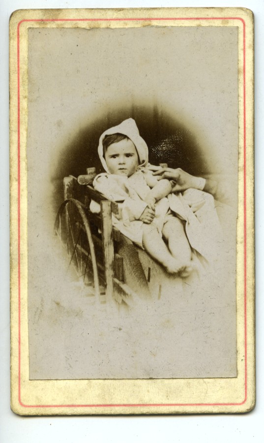 France Baby in pram small trailer? Old CDV photo 1890