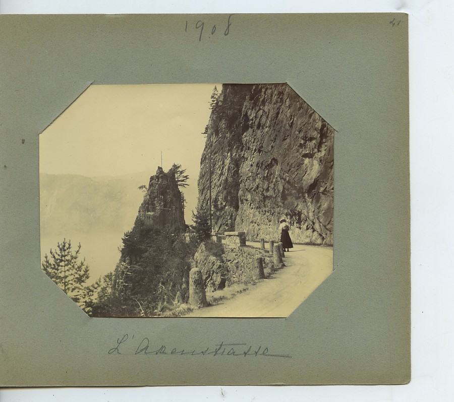 Switzerland Axenstrasse road cliffs Lake Lucerne Old Photo Snapshot 1908