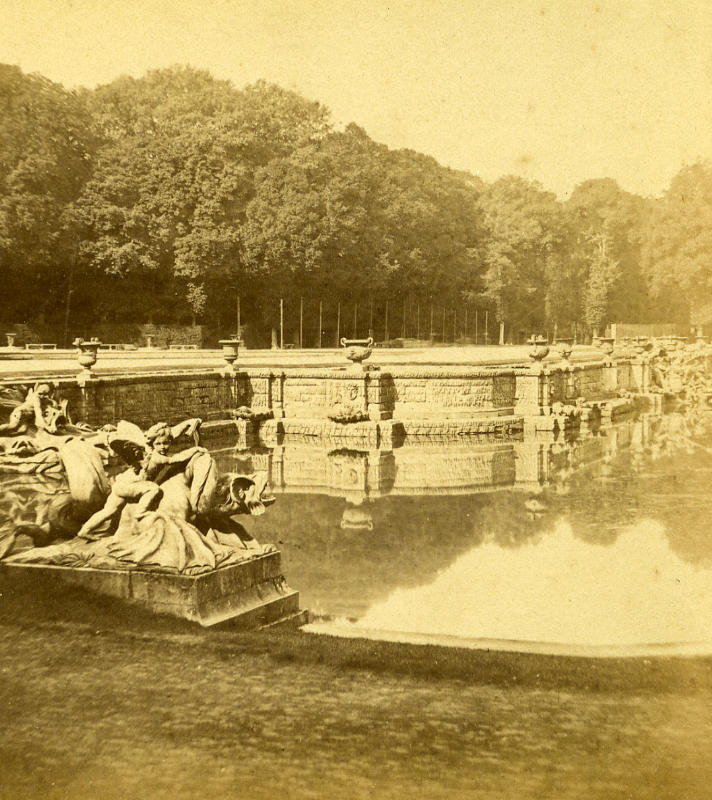 France Second Empire Versailles Chateau Bassin ancienne photo stereo 1868