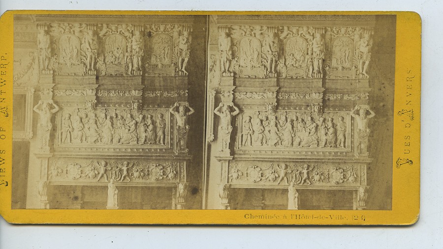 Belgium Antwerp City Hall Carved Fireplace old Stereoview Photo 1880